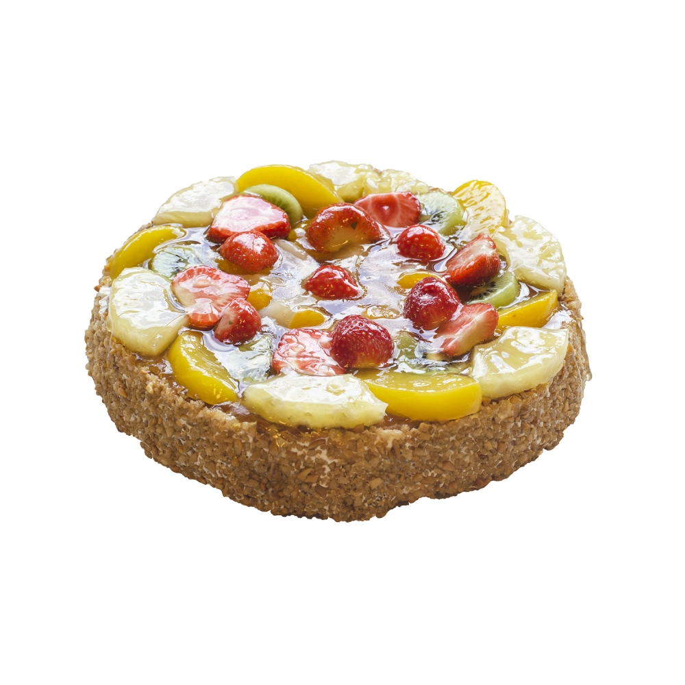 Een slagroomtaart afgewerkt met diverse soorten fruit